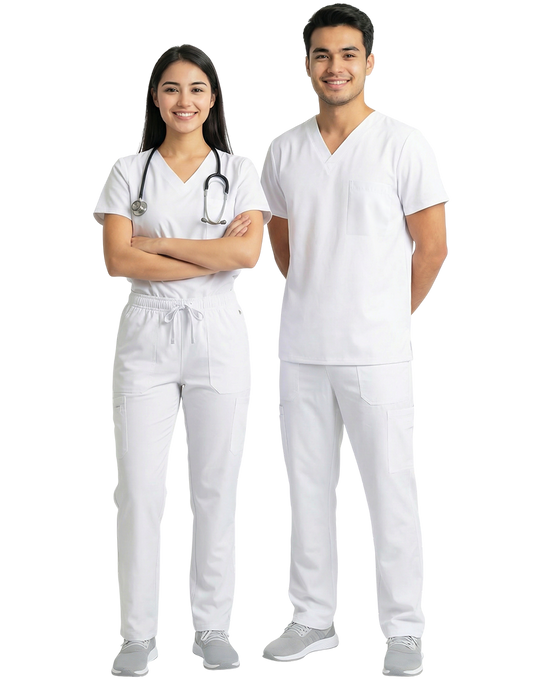 Unisex White Scrub Top