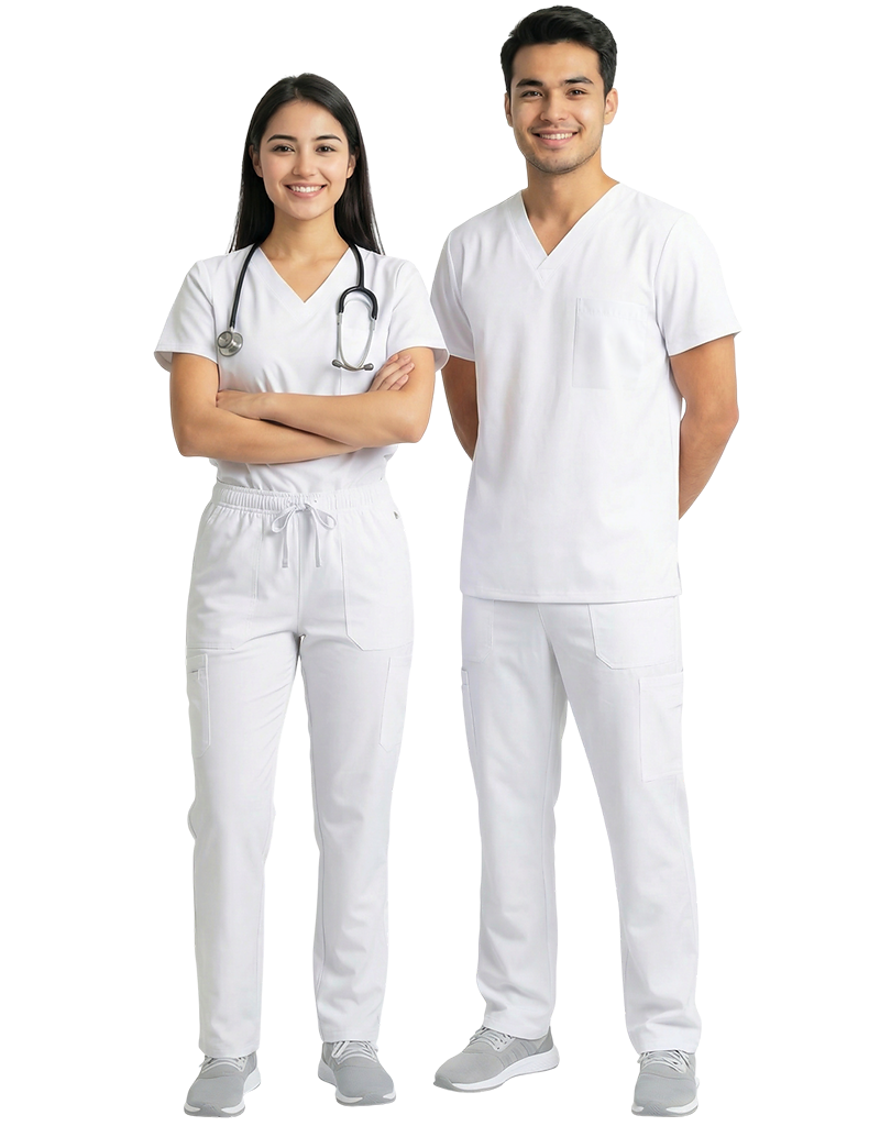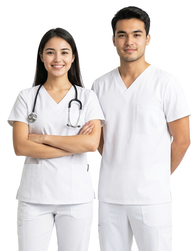 Unisex White Scrub Top